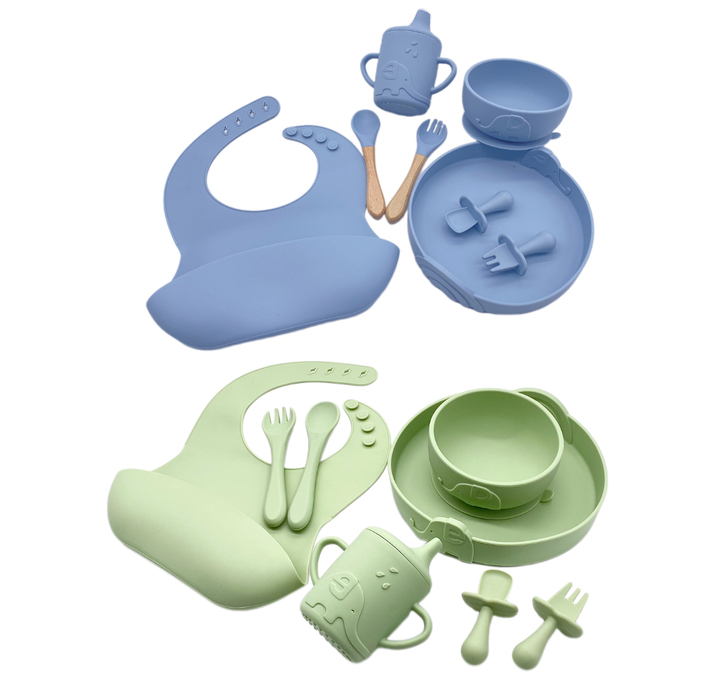 Conjunto de utensílios de mesa para bebês, colher e babadores de silicone personalizados à prova d'água, de qualidade alimentar sem bpa, por atacado