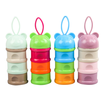 BPA içermeyen renkli 3-Layer PP bebek süt tozu kutusu karikatür desen konteyner 3 küçük kutular 0-12 ay için bebek şişe için